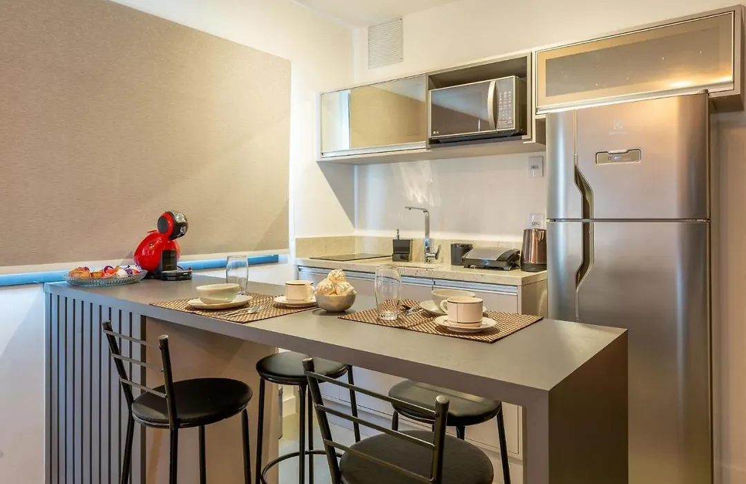 O Liv - Apartamento 907 também dispõe de cozinha totalmente equipada com comodidades. Os hóspedes podem relaxar no seu espaço compartilhado.